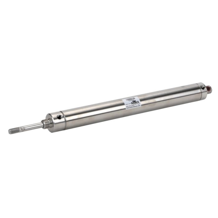 NITRA pneumatic air cylinder, all stainless steel non-repairable, 1-1/2in bore, 12in stroke, double acting, double end mount.