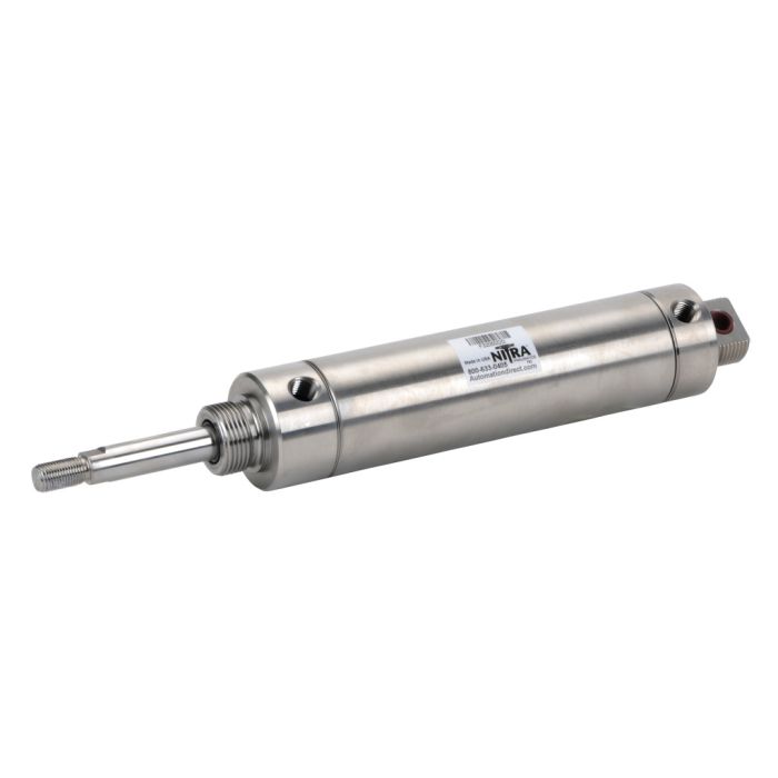 NITRA pneumatic air cylinder, all stainless steel non-repairable, 2in bore, 5in stroke, double acting, double end mount.