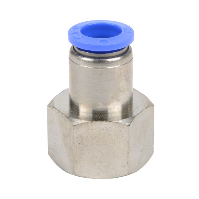 NITRA pneumatic push-to-connect fitting, female, straight, nickel-plated brass body, nickel-plated brass threads, 10mm tube to R1/2 BSPT connection(s). Package of 5.