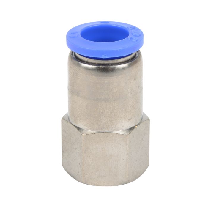 NITRA pneumatic push-to-connect fitting, female, straight, nickel-plated brass body, nickel-plated brass threads, 10mm tube to R1/4 BSPT connection(s). Package of 5.