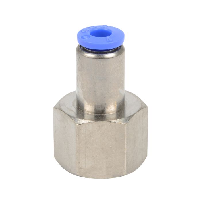 NITRA pneumatic push-to-connect fitting, female, straight, nickel-plated brass body, nickel-plated brass threads, 5/32in (4mm) tube to R1/4 BSPT connection(s). Package of 5.