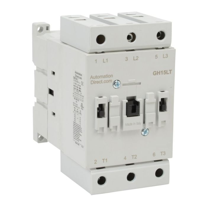 GH15 series contactor, IEC, non-reversing, 95 amps, 3-pole, 79mm frame, coil voltage 120 VAC 60Hz. Purchase auxiliary contacts separately.