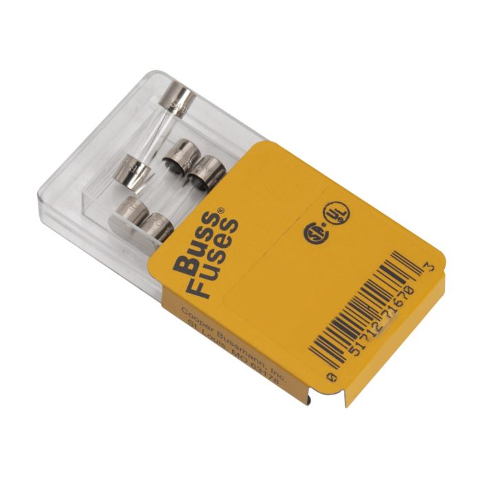 Edison fuse, GMA series, small dimension, fast-acting, 0.5A, 250 VAC, glass tube, 5x20mm. Package of 5. Supplemental, electronic protection applications. Manufacturer part number: GMA-500-R.