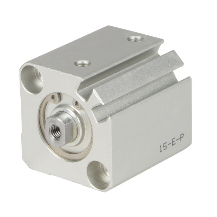 NITRA pneumatic air cylinder, compact extruded, 20mm bore, 10mm stroke, double acting, magnetic piston, tapped end caps mount.
