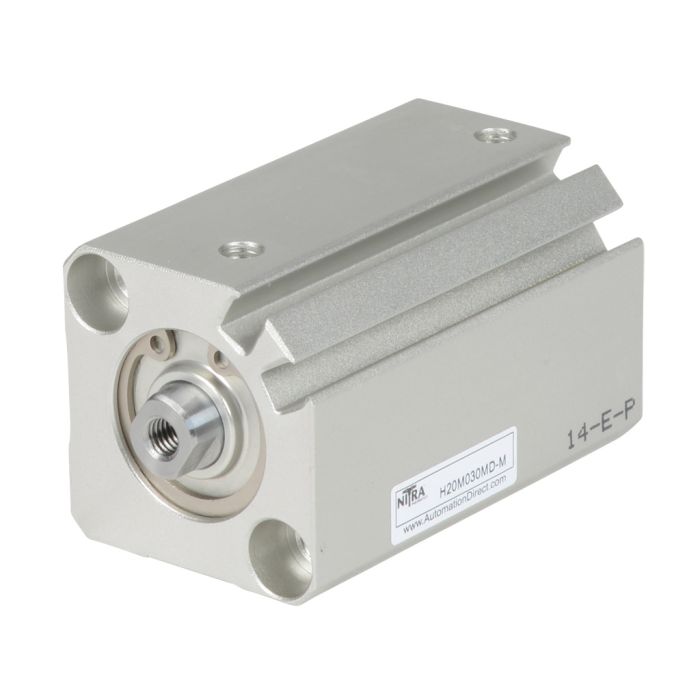 NITRA pneumatic air cylinder, compact extruded, 20mm bore, 30mm stroke, double acting, magnetic piston, tapped end caps mount.