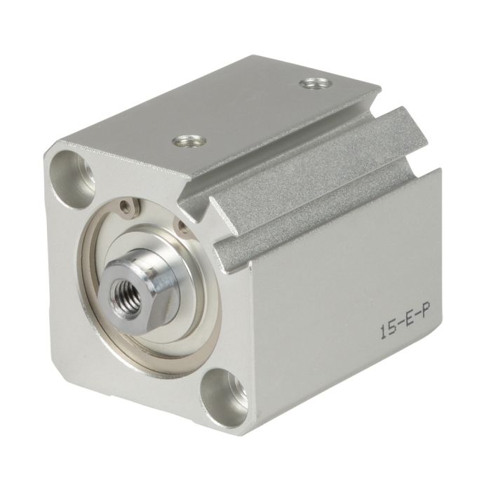 NITRA pneumatic air cylinder, compact extruded, 25mm bore, 15mm stroke, double acting, magnetic piston, tapped end caps mount.
