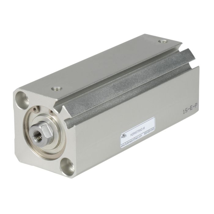 NITRA pneumatic air cylinder, compact extruded, 25mm bore, 75mm stroke, double acting, magnetic piston, tapped end caps mount.