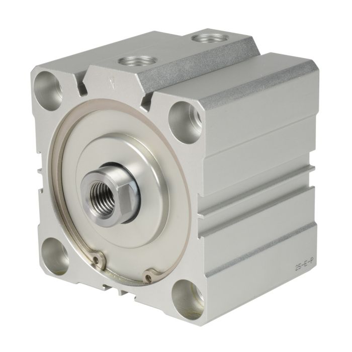 NITRA pneumatic air cylinder, compact extruded, 80mm bore, 25mm stroke, double acting, magnetic piston, tapped end caps mount.