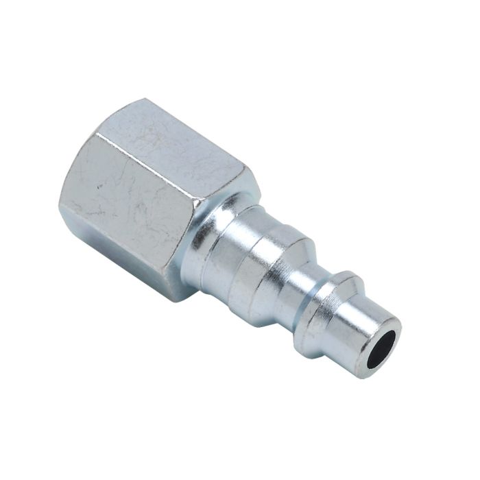 NITRA pneumatic quick disconnect fitting, coupling plug, steel body, 1/4in industrial interchange plug to 1/4in female NPT.