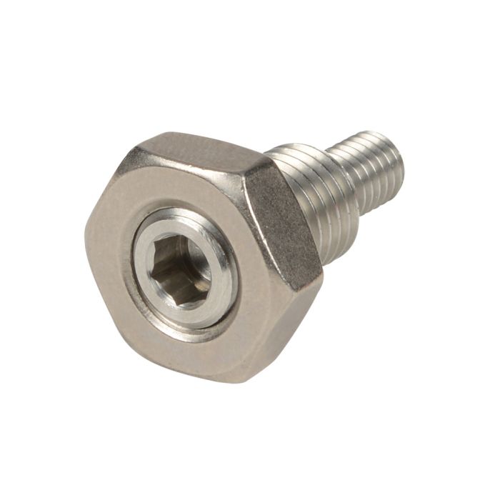 NITRA cylinder male adapter, M10 X 1.25 thread, stainless steel. For use with 25mm H-series cylinders. Hex nut included.