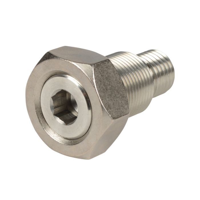 NITRA cylinder male adapter, M22 x 1.5 thread, stainless steel. For use with 80mm H-series cylinders. Hex nut included.