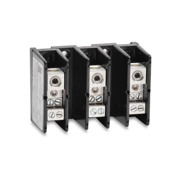 Edison distribution block, open type, 175A max, UL Listed, 3 pole, openings: 1 line side / 4 load side, 200kA SCCR. Suitable for branch and feeder circuits.