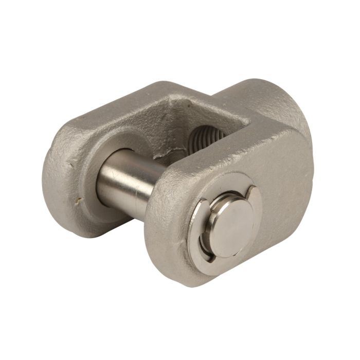NITRA cylinder rod clevis, M18 x 1.5 thread, cast iron. For use with 63mm H-series cylinders. Male adapter and hex nut included.