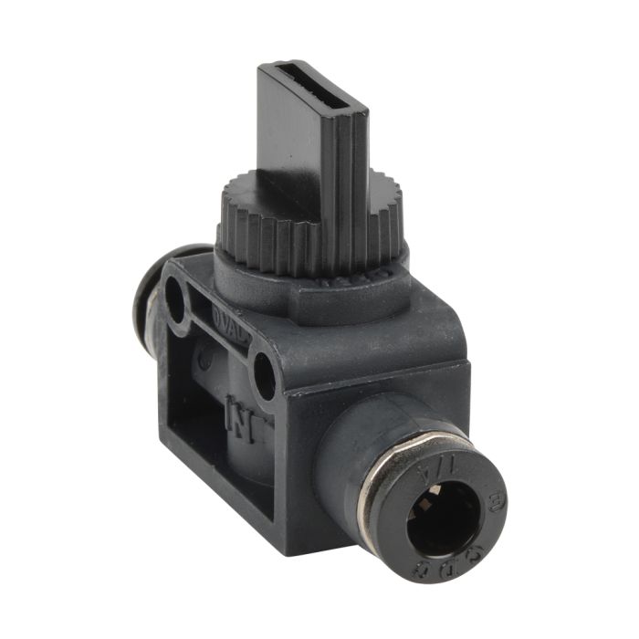 NITRA pneumatic push-to-connect fitting, union straight manual hand valve, 3-way, thermoplastic (PBT) body, (2) 1/4in tube connection(s). Package of 2.