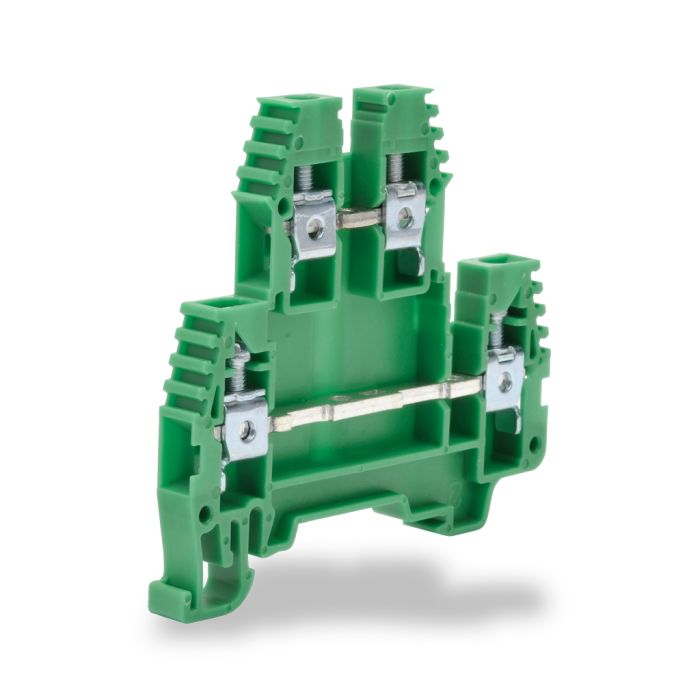 Konnect-It double-level terminal block, 26-10 AWG, green, 30A, 300V rated (UL). 100 pieces per package.