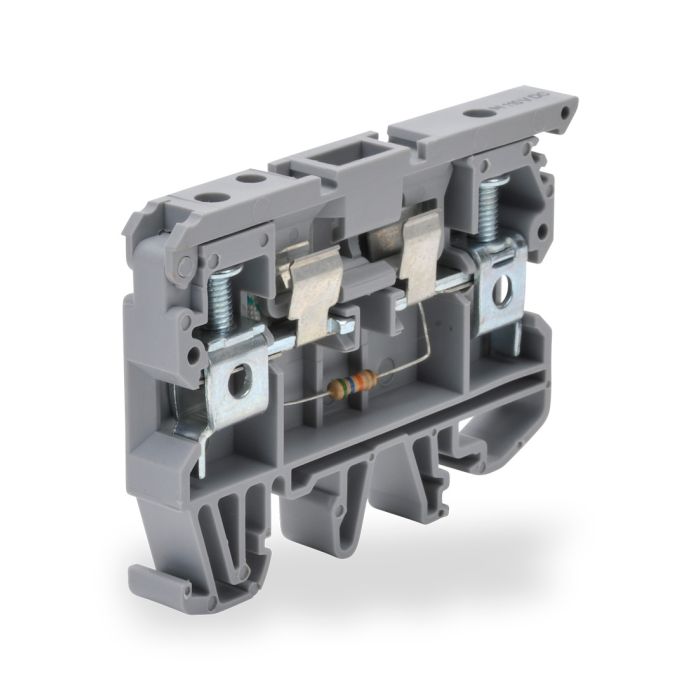 Konnect-It fuse terminal block, with 110VDC LED, 26-8 AWG, gray, 6.3A, 300V rated (UL). Accepts 5mm x 20mm fuses. 10 pieces per package.