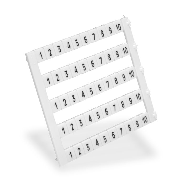 Konnect-It marking tag, 5 x 5 mm, numbered 1-10 (25 of each number). Use with any Konnect-It series terminal block. 250 pieces per package.