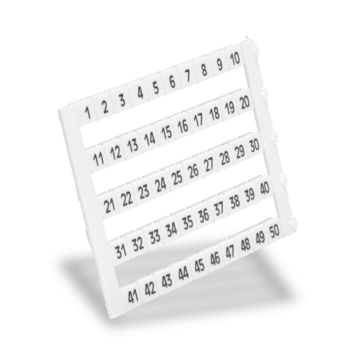 Konnect-It marking tag, 5 x 5 mm, numbered 1-50 (10 of each number). Use with any Konnect-It series terminal block. 500 pieces per package.