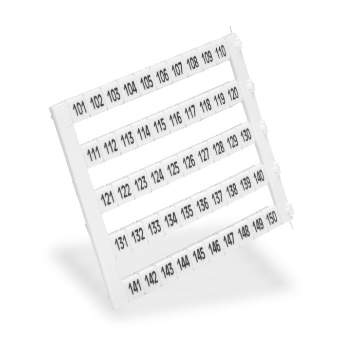 Konnect-It marking tag, 5 x 5 mm, numbered 101-150 (5 of each number). Use with any Konnect-It series terminal block. 250 pieces per package.