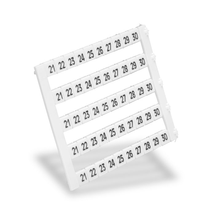 Konnect-It marking tag, 5 x 5 mm, numbered 21-30 (50 of each number). Use with any Konnect-It series terminal block. 500 pieces per package.