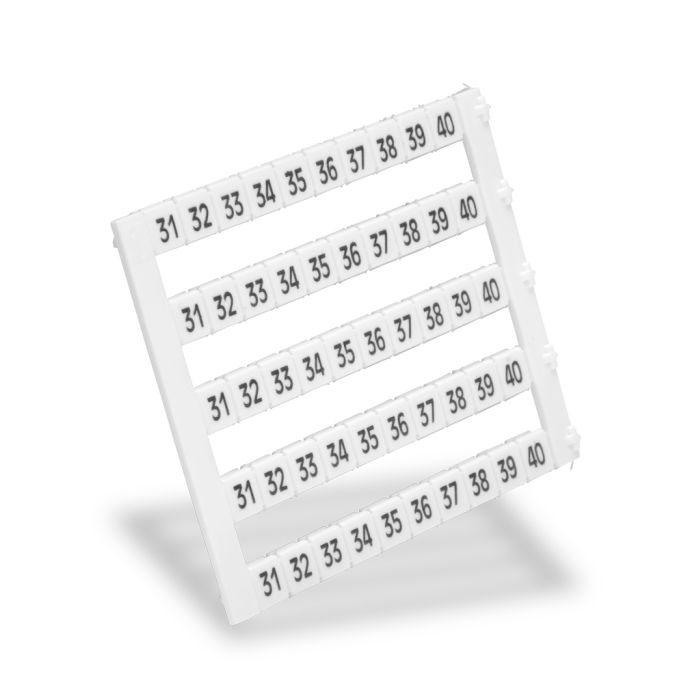 Konnect-It marking tag, 5 x 5 mm, numbered 31-40 (50 of each number). Use with any Konnect-It series terminal block. 500 pieces per package.
