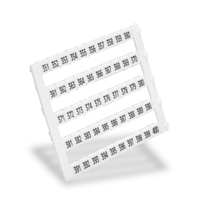 Konnect-It marking tag, 5 x 5 mm, numbered 351-400 (10 of each number). Use with any Konnect-It series terminal block. 500 pieces per package.
