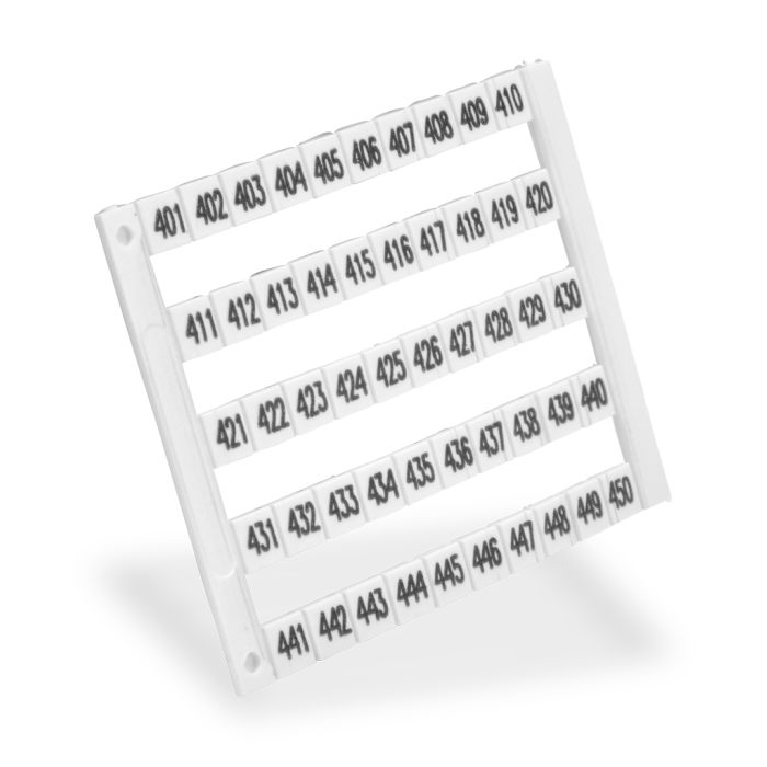 Konnect-It marking tag, 5 x 5 mm, numbered 401-450 (5 of each number). Use with any Konnect-It series terminal block. 250 pieces per package.