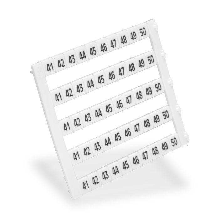 Konnect-It marking tag, 5 x 5 mm, numbered 41-50 (25 of each number). Use with any Konnect-It series terminal block. 250 pieces per package.