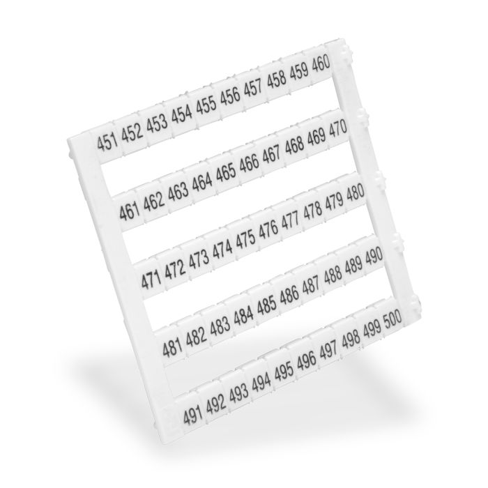 Konnect-It marking tag, 5 x 5 mm, numbered 451-500 (5 of each number). Use with any Konnect-It series terminal block. 250 pieces per package.