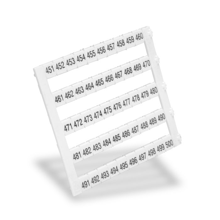 Konnect-It marking tag, 5 x 5 mm, numbered 451-500 (10 of each number). Use with any Konnect-It series terminal block. 500 pieces per package.