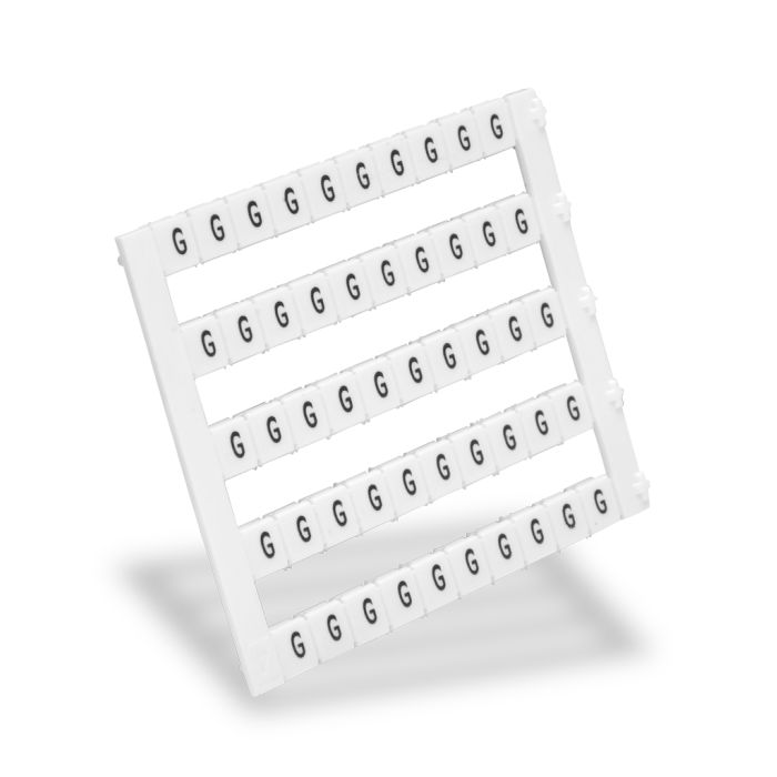 Konnect-It marking tag, 5 x 5 mm, single character (G). Use with any Konnect-It terminal block. 500 pieces per package.