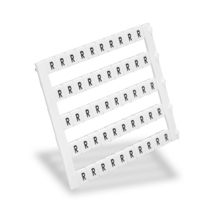 Konnect-It marking tag, 5 x 5 mm, single character (R). Use with any Konnect-It terminal block. 500 pieces per package.