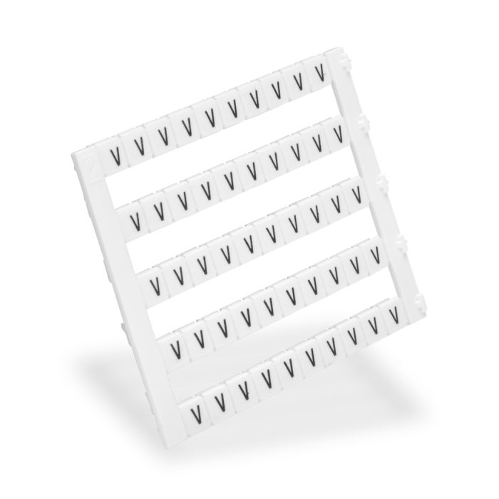 Konnect-It marking tag, 5 x 5 mm, single character (V). Use with any Konnect-It terminal block. 250 pieces per package.