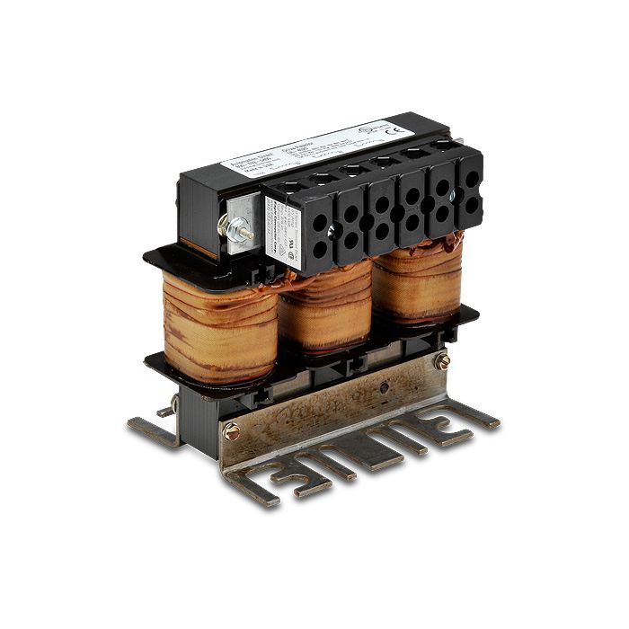 Line reactor for VFD (AC drives), 460V, 20 hp, 3% impedance, three-phase. Use on drive input or output side.