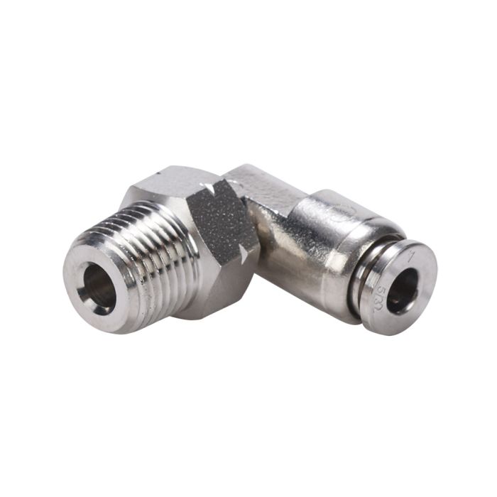 NITRA pneumatic push-to-connect fitting, male, elbow, rotating, 316 stainless steel body, 316 stainless steel threads, 5/32in (4mm) tube to 1/8in NPT connection(s).