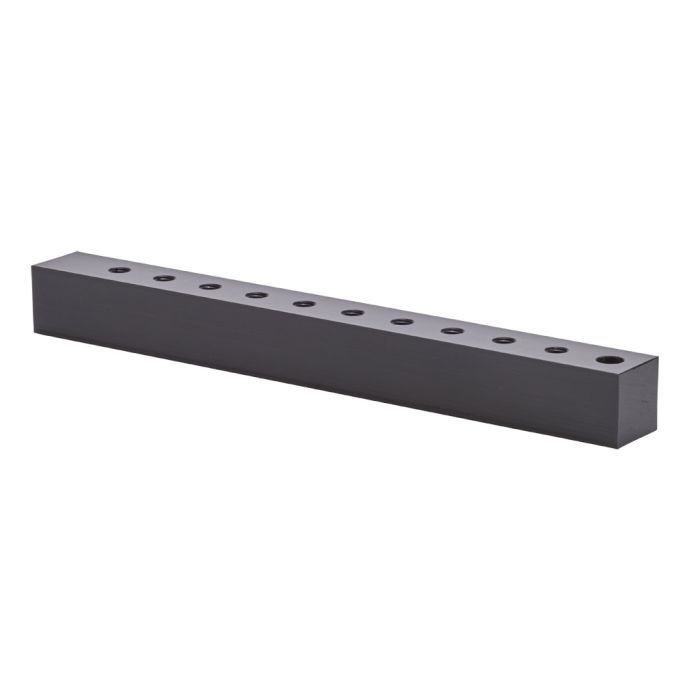 NITRA pneumatic valve manifold, aluminum, rectangular, 10 stations, (1) 1/8in female NPT inlet(s), (10) #10-32 female threaded outlet(s), standard hole spacing.