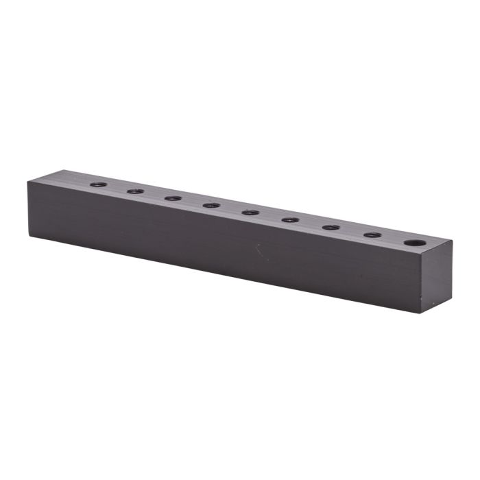 NITRA pneumatic valve manifold, aluminum, rectangular, 8 stations, (1) 1/8in female NPT inlet(s), (8) #10-32 female threaded outlet(s), standard hole spacing.