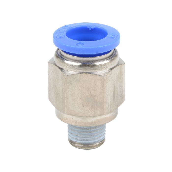 NITRA pneumatic push-to-connect fitting, male, straight, nickel-plated brass body, nickel-plated brass threads, 10mm tube to R1/8 BSPT connection(s). Package of 5.