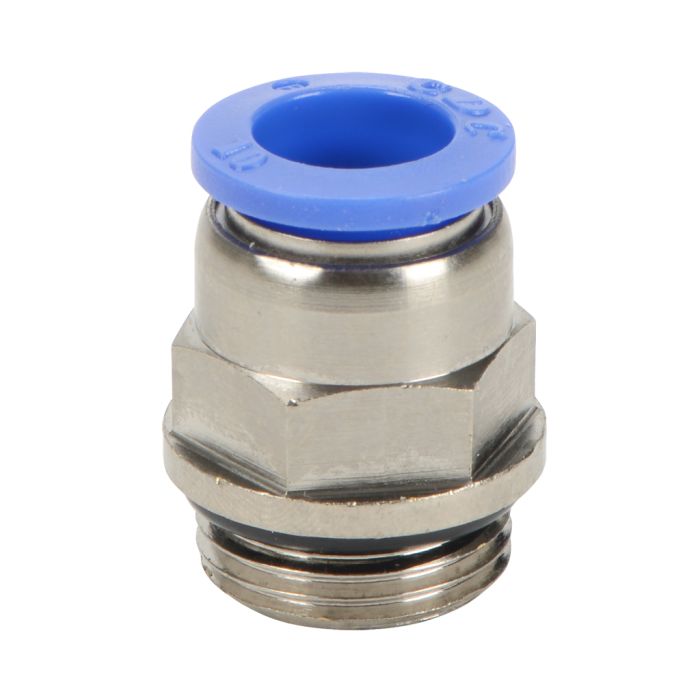 NITRA pneumatic push-to-connect fitting, male, straight, nickel-plated brass body, nickel-plated brass threads, 10mm tube to G3/8 BSPP connection(s). Package of 5.