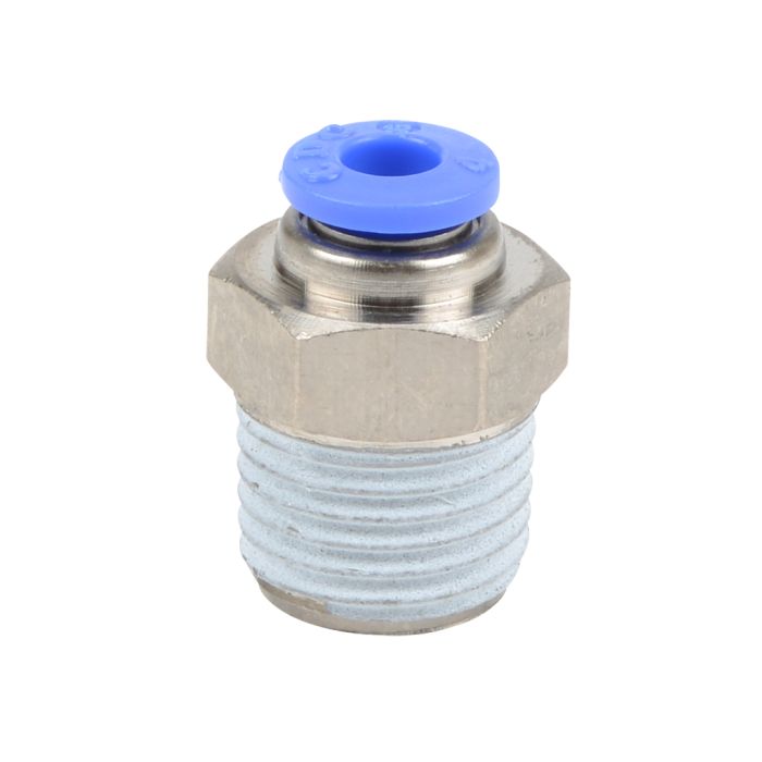 NITRA pneumatic push-to-connect fitting, male, straight, nickel-plated brass body, nickel-plated brass threads, 5/32in (4mm) tube to R1/4 BSPT connection(s). Package of 5.