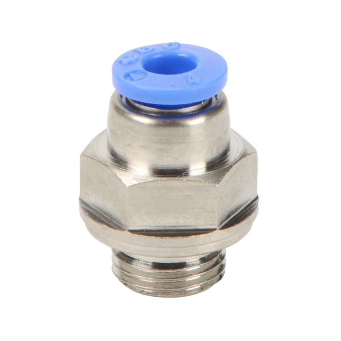 NITRA pneumatic push-to-connect fitting, male, straight, nickel-plated brass body, nickel-plated brass threads, 5/32in (4mm) tube to G1/8 BSPP connection(s). Package of 5.