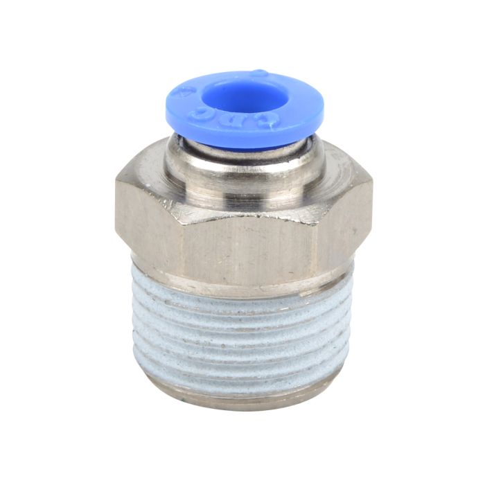 NITRA pneumatic push-to-connect fitting, male, straight, nickel-plated brass body, nickel-plated brass threads, 6mm tube to R3/8 BSPT connection(s). Package of 5.