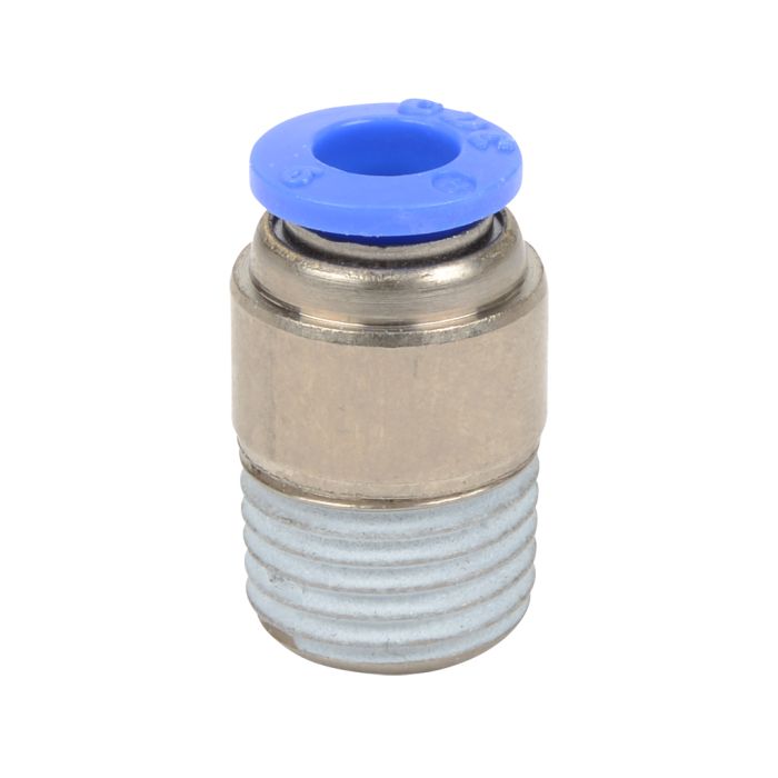 NITRA pneumatic push-to-connect fitting, male, round straight, nickel-plated brass body, nickel-plated brass threads, 6mm tube to R1/4 BSPT connection(s). Package of 5.