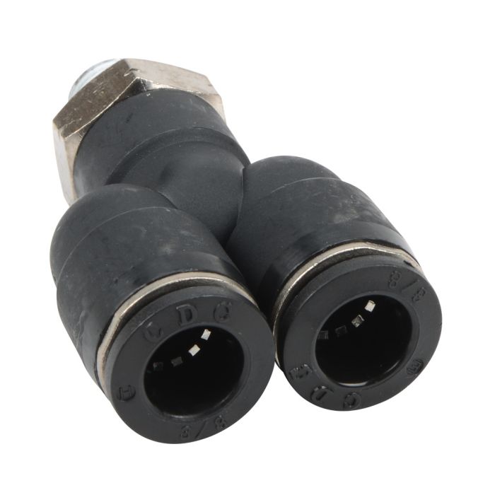 NITRA pneumatic push-to-connect fitting, male, Y, rotating, thermoplastic (PBT) body, nickel-plated brass threads, (2) 3/8in tube to 1/8in NPT connection(s). Package of 5.