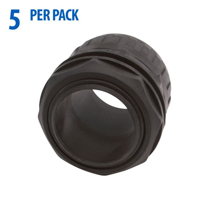 IBOCO connector, liquid-tight, for flexible tubing, straight, non-metallic, black, 1-1/2 inch. Seal gaskets included. Package of 5.