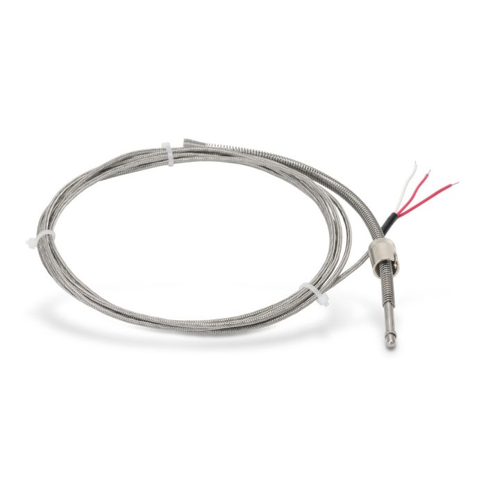 ProSense RTD, adjustable immersion, Pt100, Class A, 3-wire, 1/4 inch length x 3/16 inch diameter tip, 8 inch spring, bayonet cap, 10-foot lead wires, overbraid.