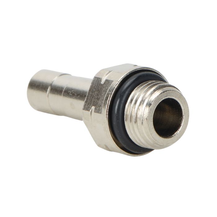 NITRA pneumatic push-to-connect fitting, stem adapter, nickel-plated brass body, 1/4in push in to 1/8in male NPT. Package of 5.