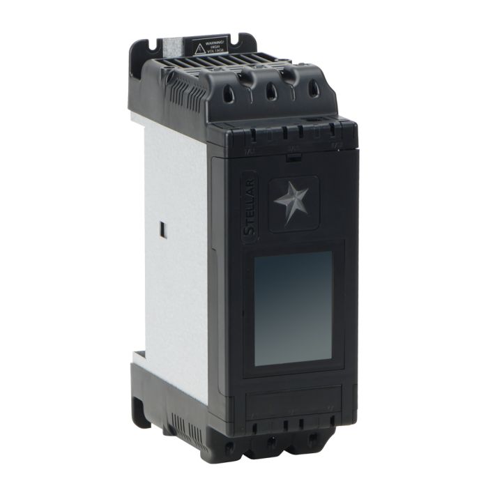 Stellar SR55 series full-featured soft starter, 27A, 200-480 VAC 3-phase, rated for 5 starts/hour, internally bypassed, 24 VDC, 110 VAC or 230 VAC control power.