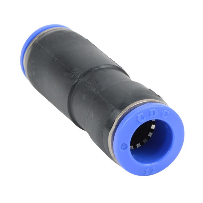 NITRA pneumatic push-to-connect fitting, union straight stop valve, thermoplastic (PBT) body, (2) 12mm tube connection(s). Package of 5.