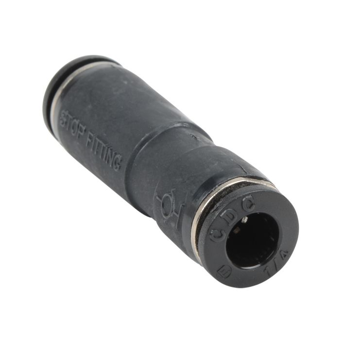 NITRA pneumatic push-to-connect fitting, union straight stop valve, thermoplastic (PBT) body, (2) 1/4in tube connection(s). Package of 5.